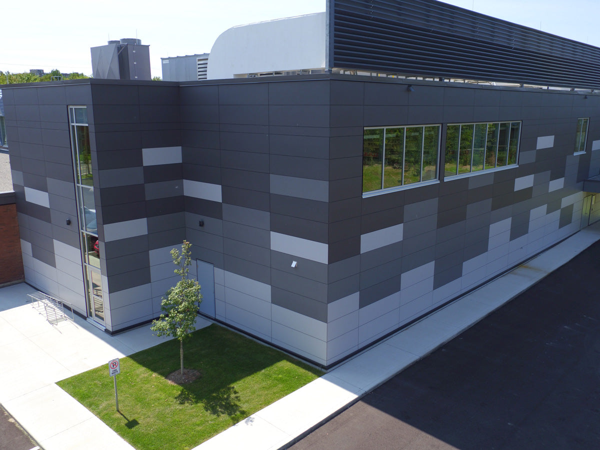 A great design by Perry & Perry and ATRR architects using Equitone fibre cement to create an elegant and modern mosaic. The use of Equitone's Natura Pro on the AMRIC building shows the diversity of the product in a mosaic pattern to achieve the architect's aesthetic vision. It was installed with perfection by Essential Exteriors, who worked with the Build North team to ensure the building flowed together.