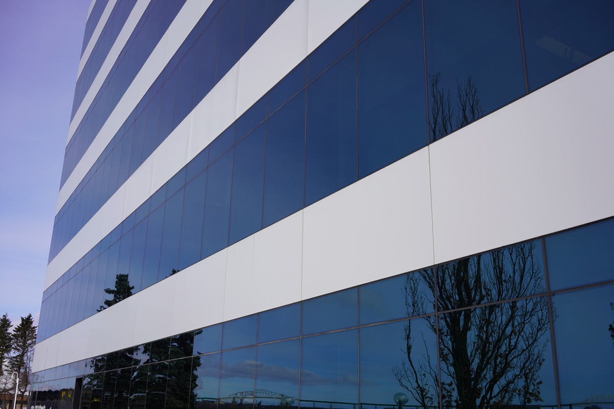 Civic Centre which is the City Hall and Municipal building for the City of Sault Ste Marie ON. They were looking for a refresh to their original cladding. Working with HDR Architects out of Toronto, Citadel Envelope 2000 RS ACP(aluminum composite panels) were chosen to reclad the entire exterior façade in a beautiful reserve white colour.