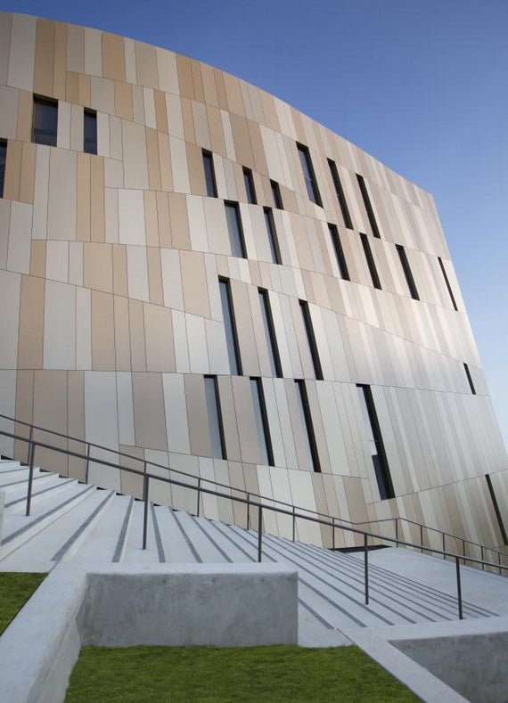Trespa HPL all season durability. This façade protects what is behind it. Trespa uses next-generation (EBC) electron beam curing technology to create a closed and smooth surface in multiple colours and finishes. Built for rough weather and impact resistance.